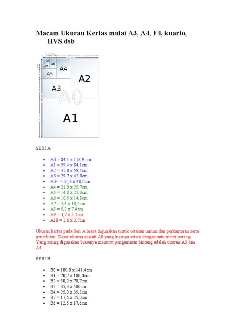 Mengetahui Ukuran Kertas A0 A1 A2 A3 A4 A4s A5 A6 A7 A8 A9 A10 Dalam Cm Dan Inchi Tips Dani
